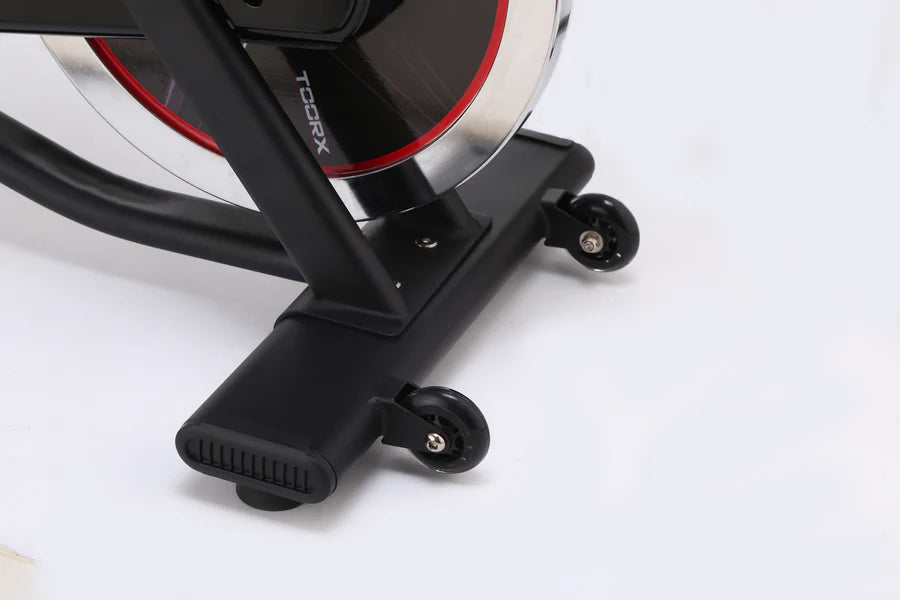 Vélo de spinning professionnel, idéal pour les entraînements intensifs. Il est équipé d'un système de freinage magnétique avec blocage d'urgence, d'un volant d'inertie équilibré de 24 kg et d'un ordinateur LCD qui enregistre toutes les données d'entraînement. Son cadre en acier haute résistance et son guidon avec double porte-bidon garantissent robustesse, confort et praticité. Ceinture cardio incluse.