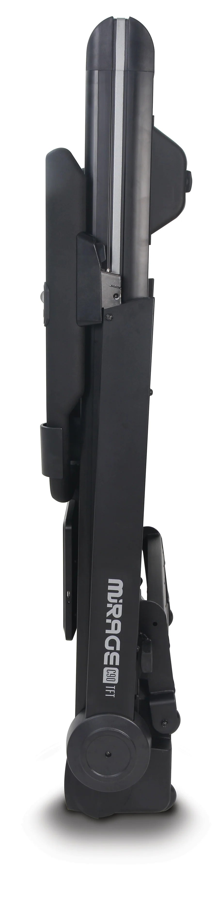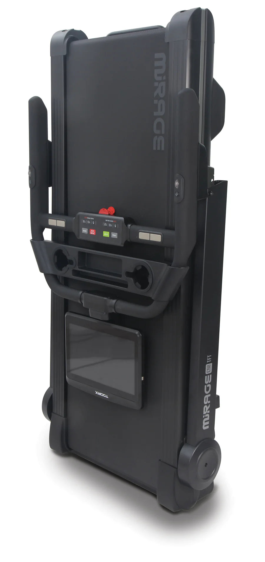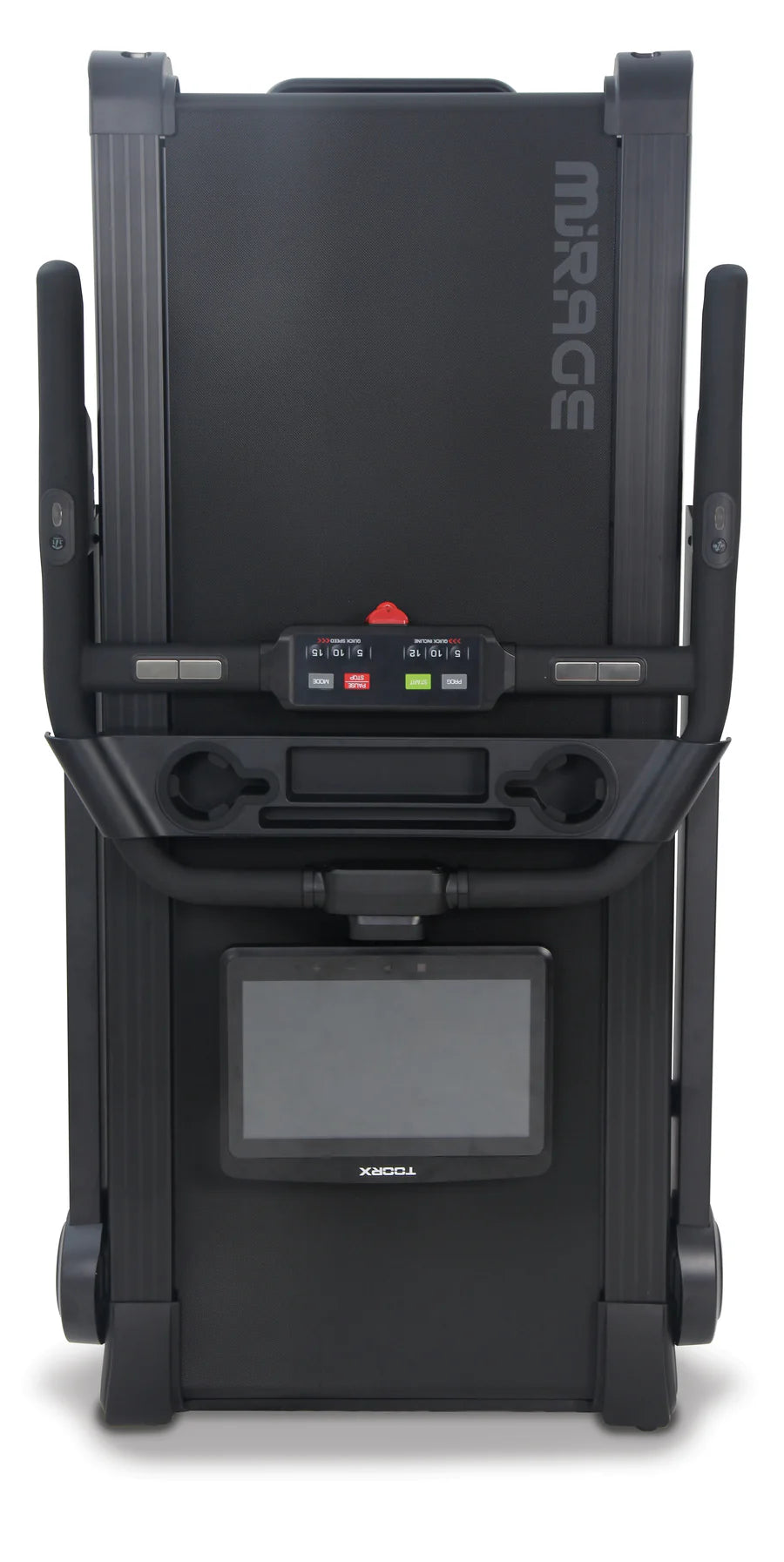 Tapis de course haute performance avec moteur CC sans balais de 4/6 CV (crête) , vitesse jusqu'à 22 km/h et inclinaison électrique de 15 % sur 12 niveaux. Console tactile TFT HD de 15,6 pouces avec applications préinstallées telles que Facebook, Twitter, Instagram, YouTube, Netflix*, Disney+ , Spotify , Prime Video*, Kinomap*. Système de surveillance de la fréquence cardiaque avec capteurs tactiles et récepteur de ceinture sans fil Bluetooth 5,3 kHz (inclus). Système de pliage facile d'utilisation, support pour smartphone/tablette, porte-bouteille, haut-parleurs Bluetooth et mise en miroir du smartphone (si pris en charge).